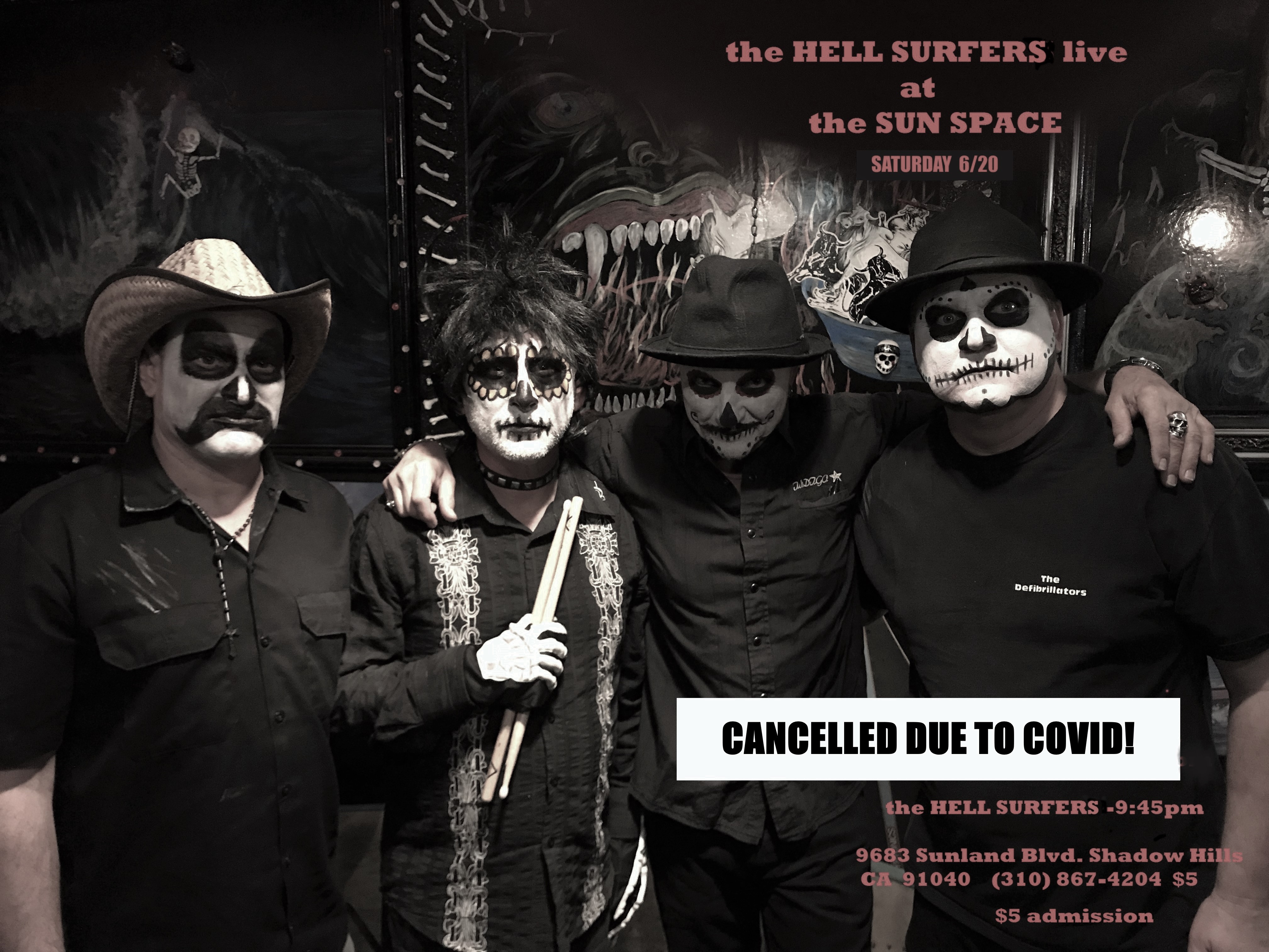 OUR SHOW WAS CANCELLED ON JUNE 20TH OF LAST YEAR AND WE HOPE TO BE PLAYING OUT SOON.
